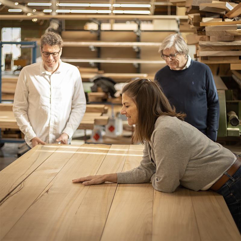 Wir gehen mit dir ins Detail. Wir erstellen Pläne, schauen uns Hölzer an, fühlen Materialien. Erst wenn du 100% zufrieden bist gehen wir in die Fertigung.